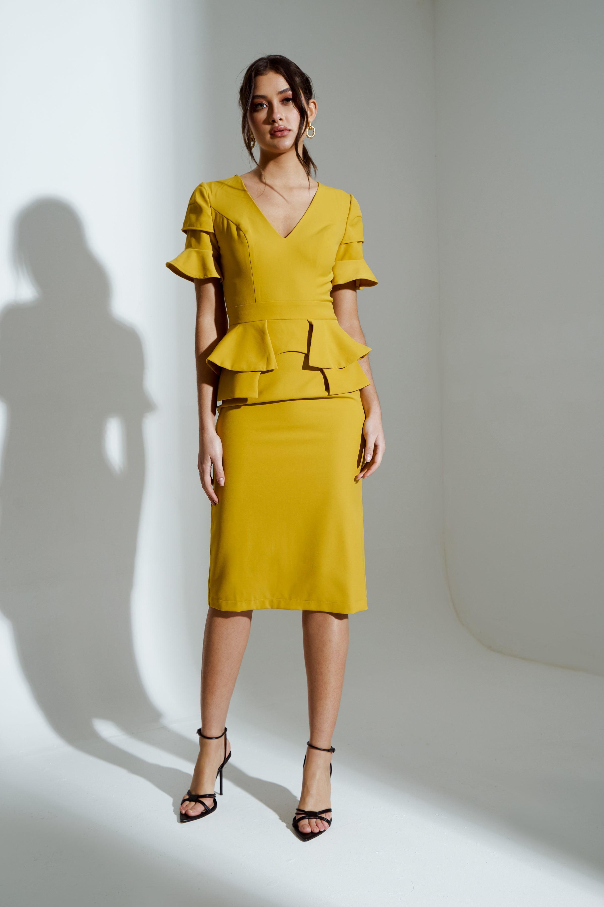 Saffron Frill Sleeve Midi Dress Golden Yellow 8thsign